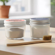 I keep the tooth powder and bamboo toothbrush on my nightstand so I remember to brush before reading in bed. It foams lightly, leaves my mouth feeling super clean, and pairs perfectly with a glass of water by the lamp.