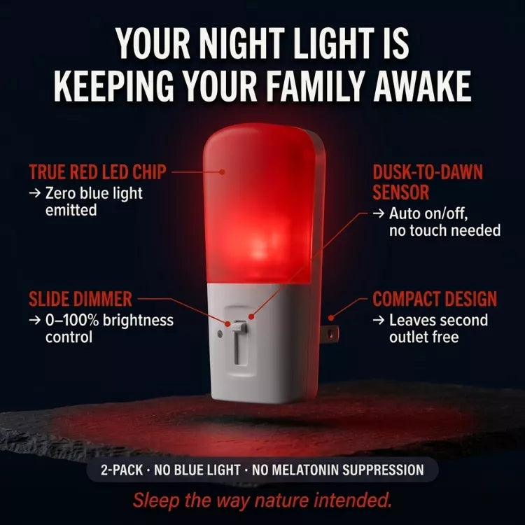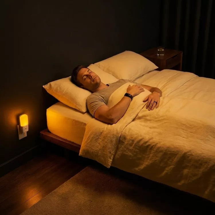 Here's something most people don't know: the standard white LED night light plugged into your wall right now is emitting the exact same blue-spectrum wavelength (460–490nm) that your smartphone screen uses to keep you alert. Clinical research shows that even low-level blue light exposure at night can suppress melatonin production by up to 50% — tricking your brain into thinking it's still daytime at 2 AM.