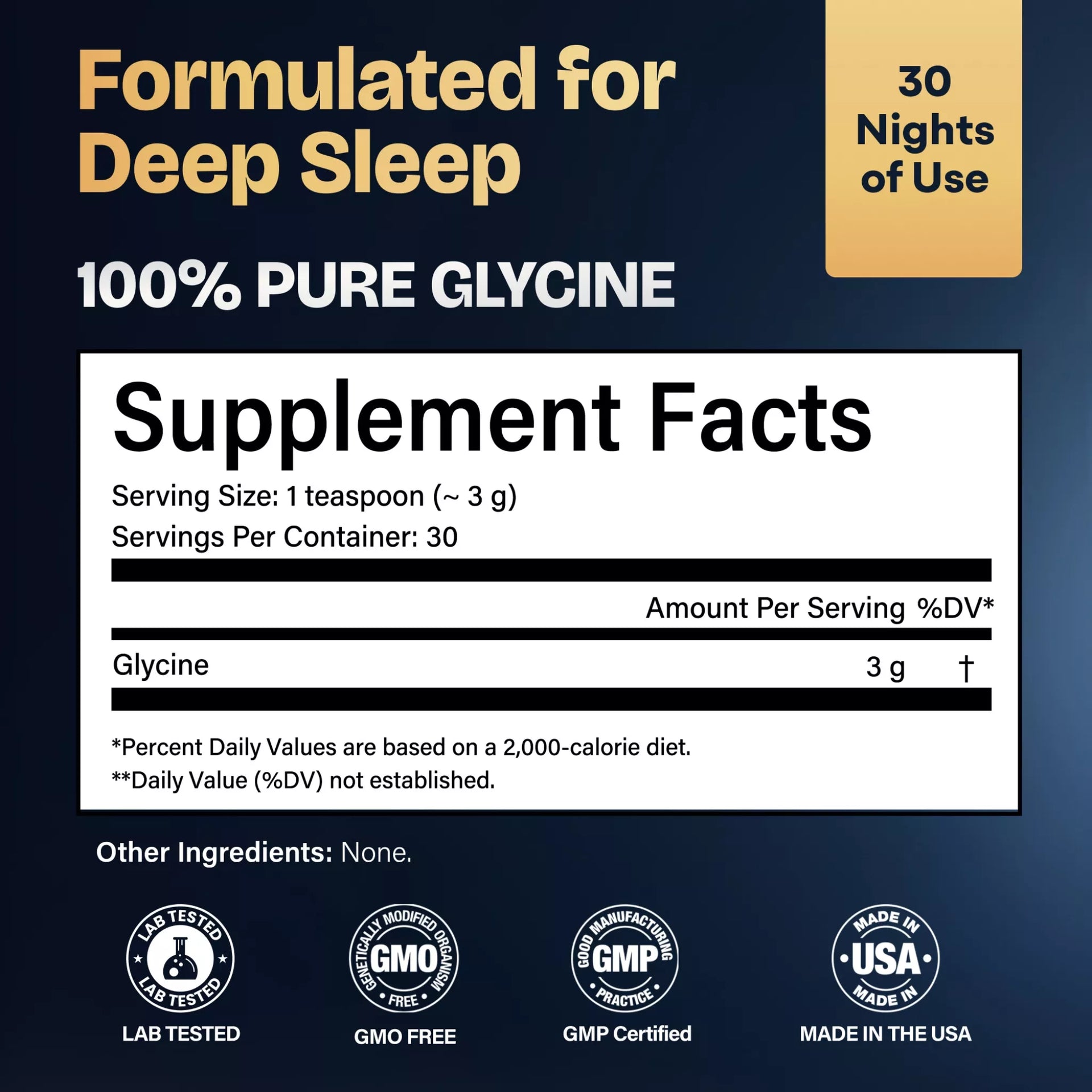 Glycine Dreams delivers 3 grams of pure pharmaceutical-grade glycine per serving — no sweeteners, no fillers, no flavors.