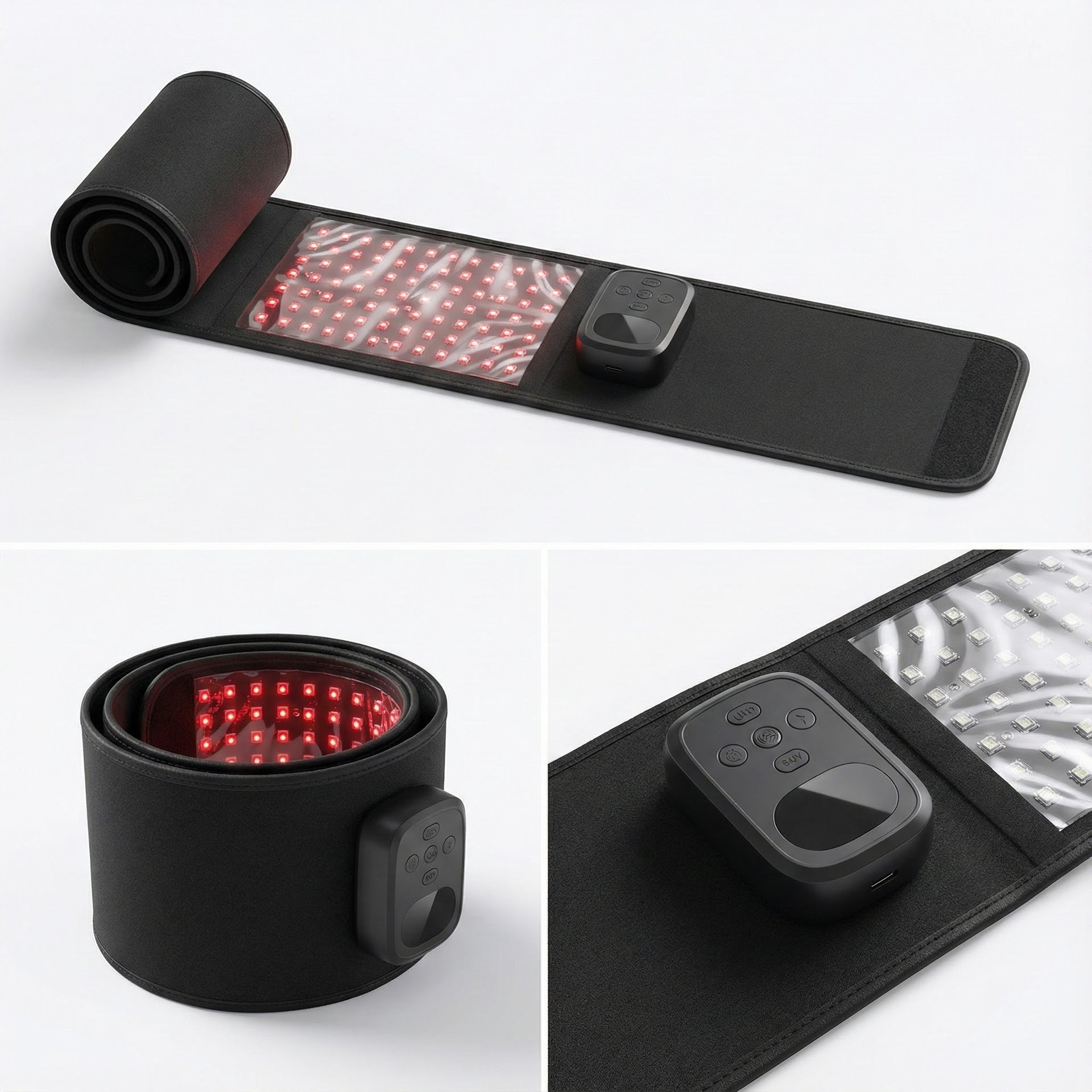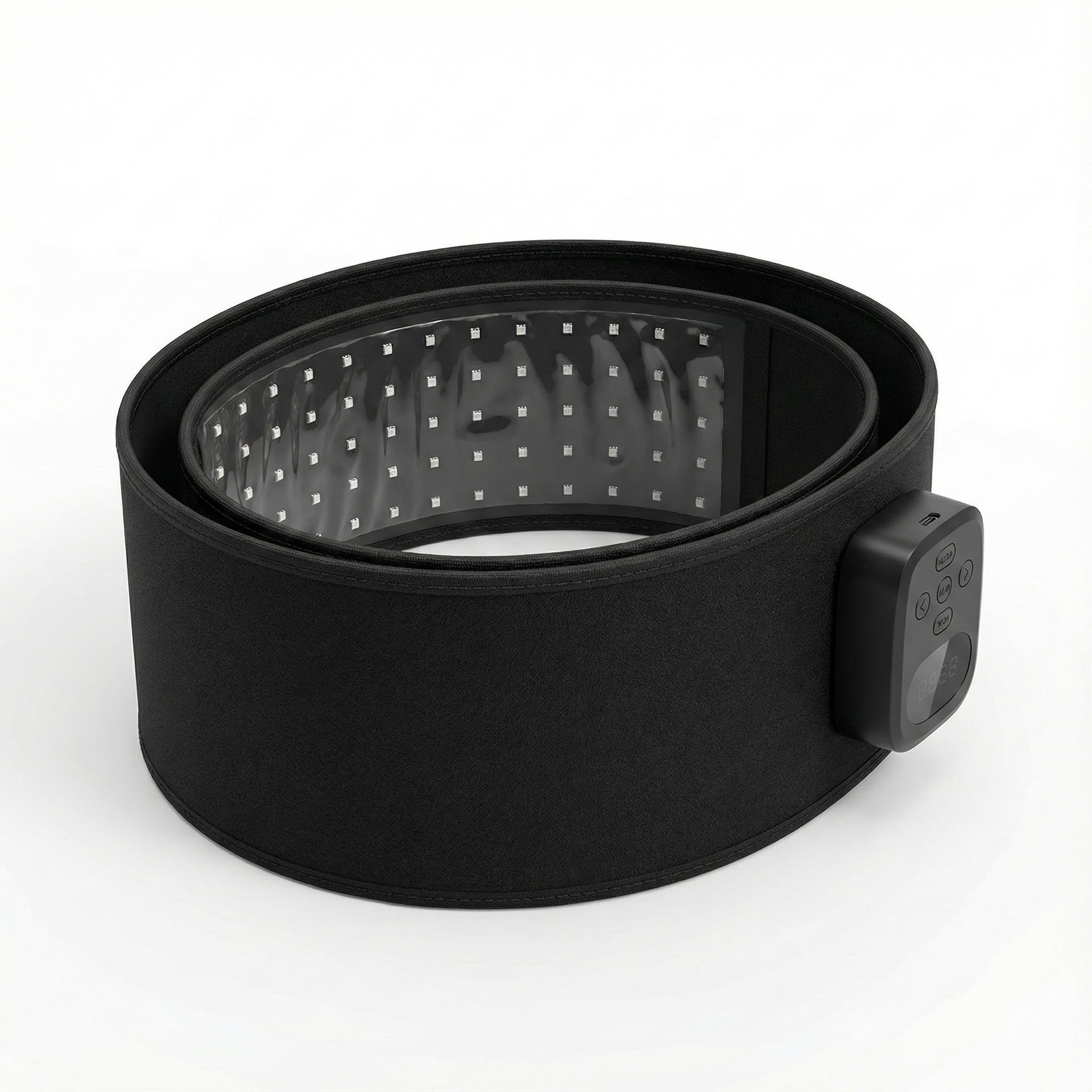 Wrap the belt around your midsection or thighs for 15–20 minutes per area, 3–5 times per week. The red light stimulates collagen production and supports skin firmness from below the surface.