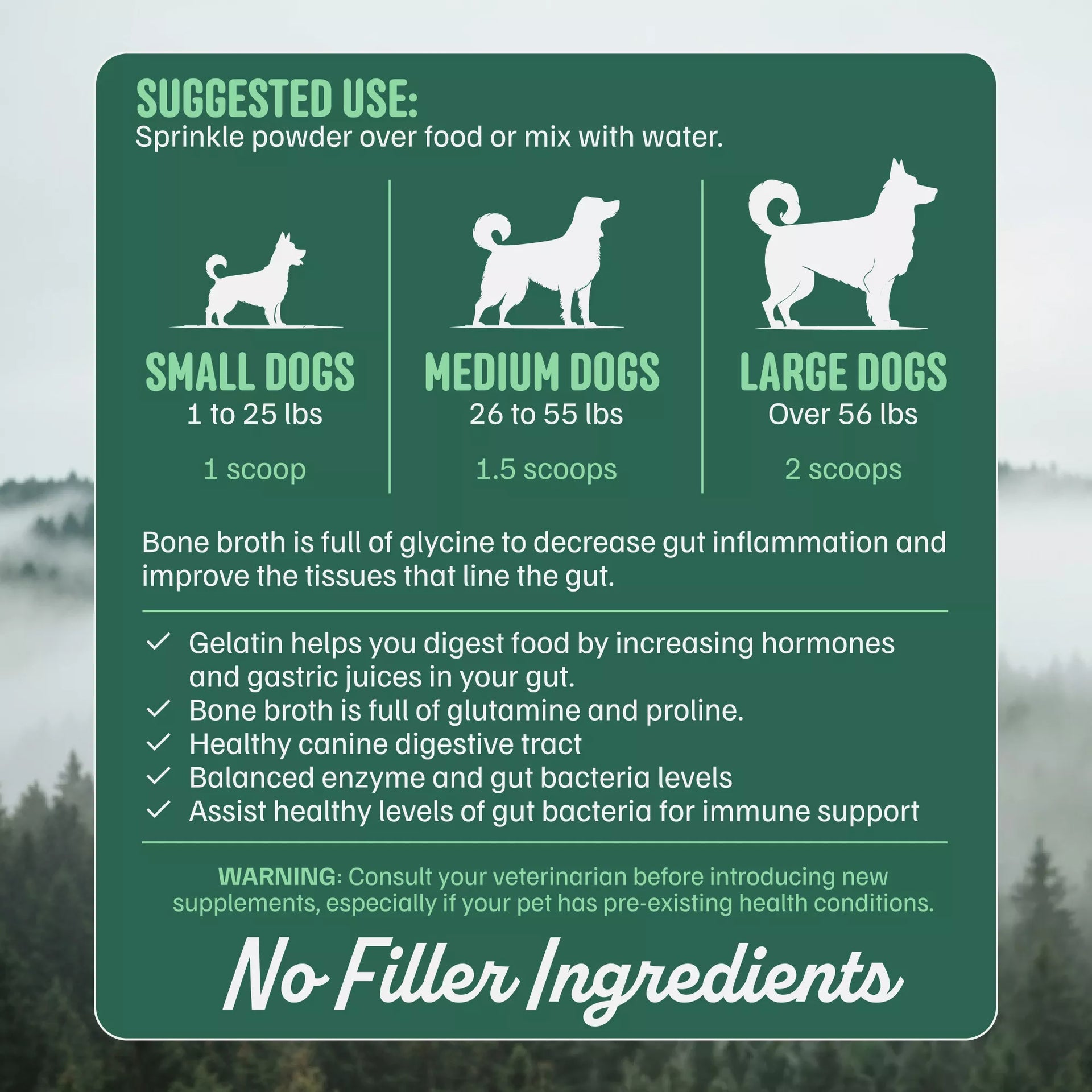 Simply sprinkle over food or mix with water to create a delicious, nutrient-rich broth. Follow the serving size based on your dog's weight for optimal benefits.