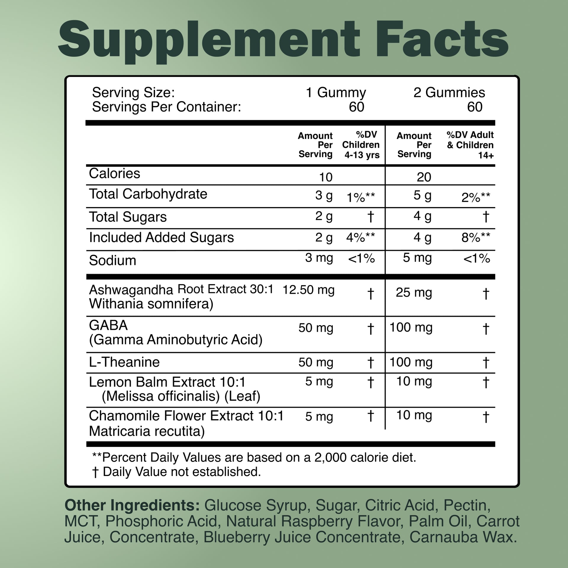 With Ashwagandha, GABA, and Chamomile for gentle relaxation and focus.