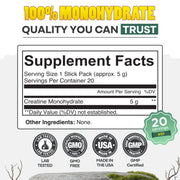 Every stick contains 5g of 100% pure creatine monohydrate, the most studied form for improving muscle growth, performance, and recovery—no fillers, no gimmicks.