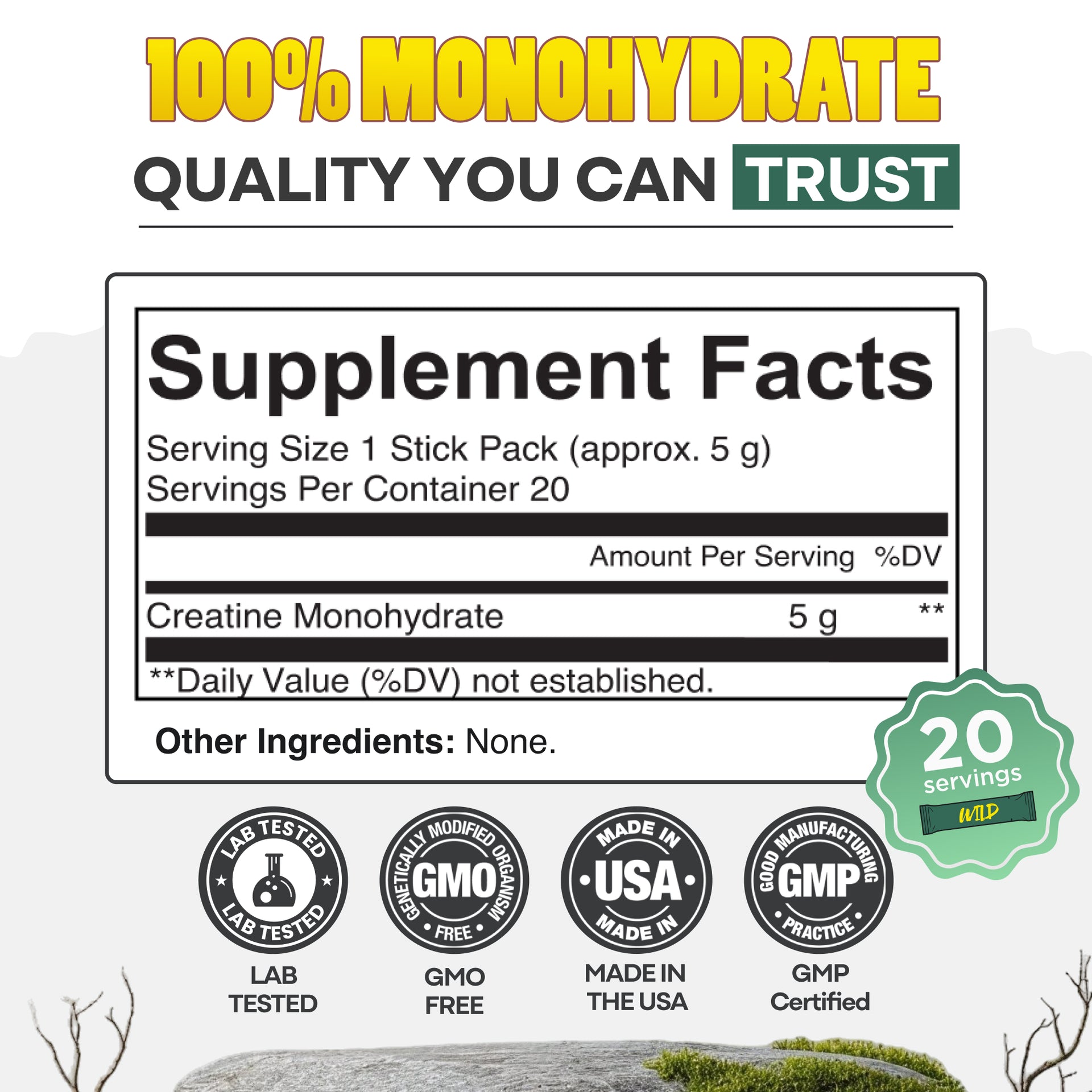 This combination of pure creatine monohydrate, convenient single-serve sticks, and clean, research-backed formulation sets Wild Creatine apart from ordinary powders or flavored blends. It’s engineered for real performance and built for everyday consistency.
