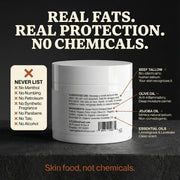 No. Tallow's fatty acid profile matches human sebum, so it absorbs fast and deep—not like petroleum products that sit on top. You'll feel the protection, but nothing sitting on your skin. Apply it and forget about it.