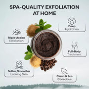 3. Triple Exfoliation: The dynamic combination of coffee, sugar, and salts works in harmony to exfoliate and remove dead skin cells while moisturizing oils provide silky nourishment, leaving your skin feeling soft and supple.