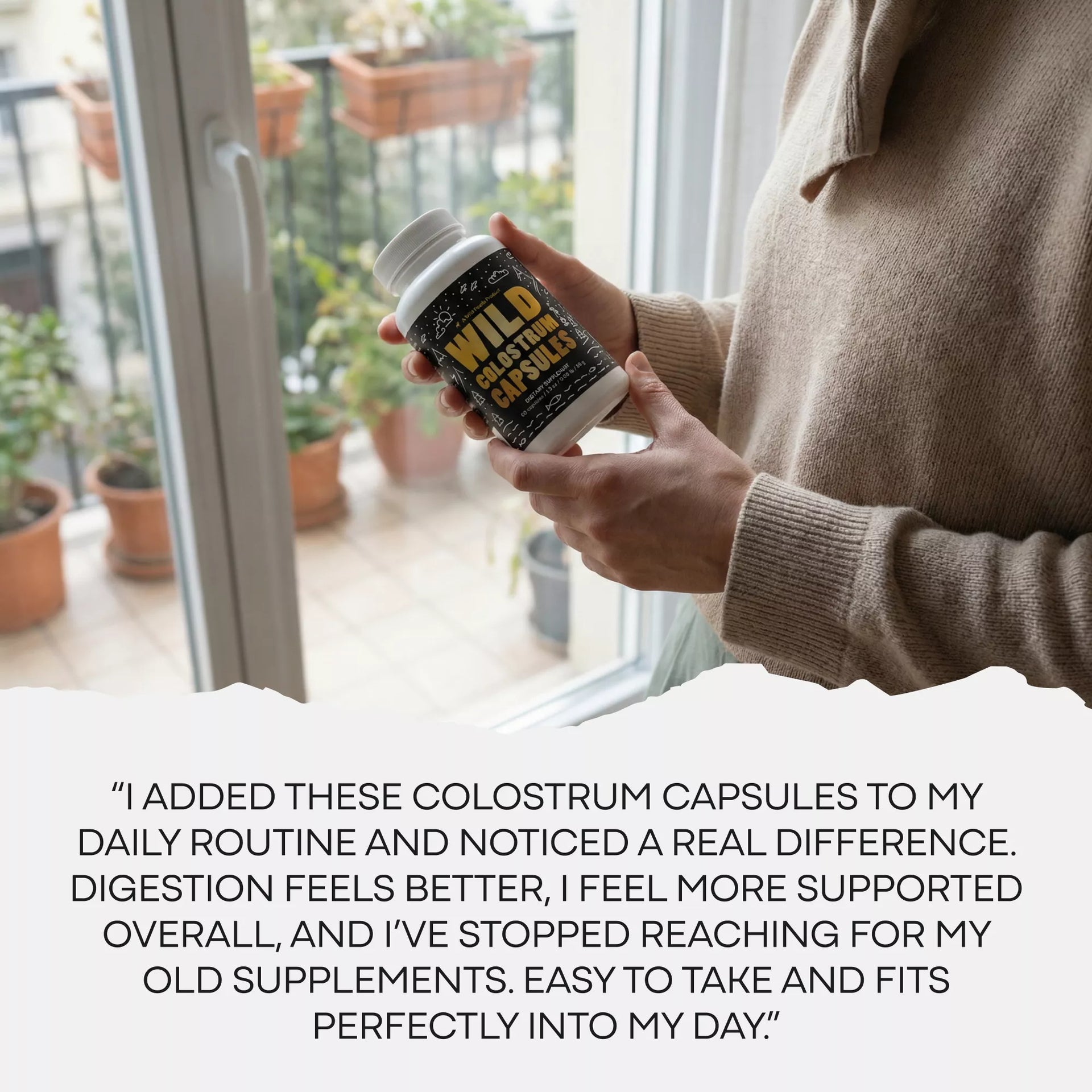 "I started using colostrum capsules in my daily routine, and the shift has been incredible. My digestion improved, I feel more protected, and I don't miss my old supplements at all. Easy to take and genuinely effective."