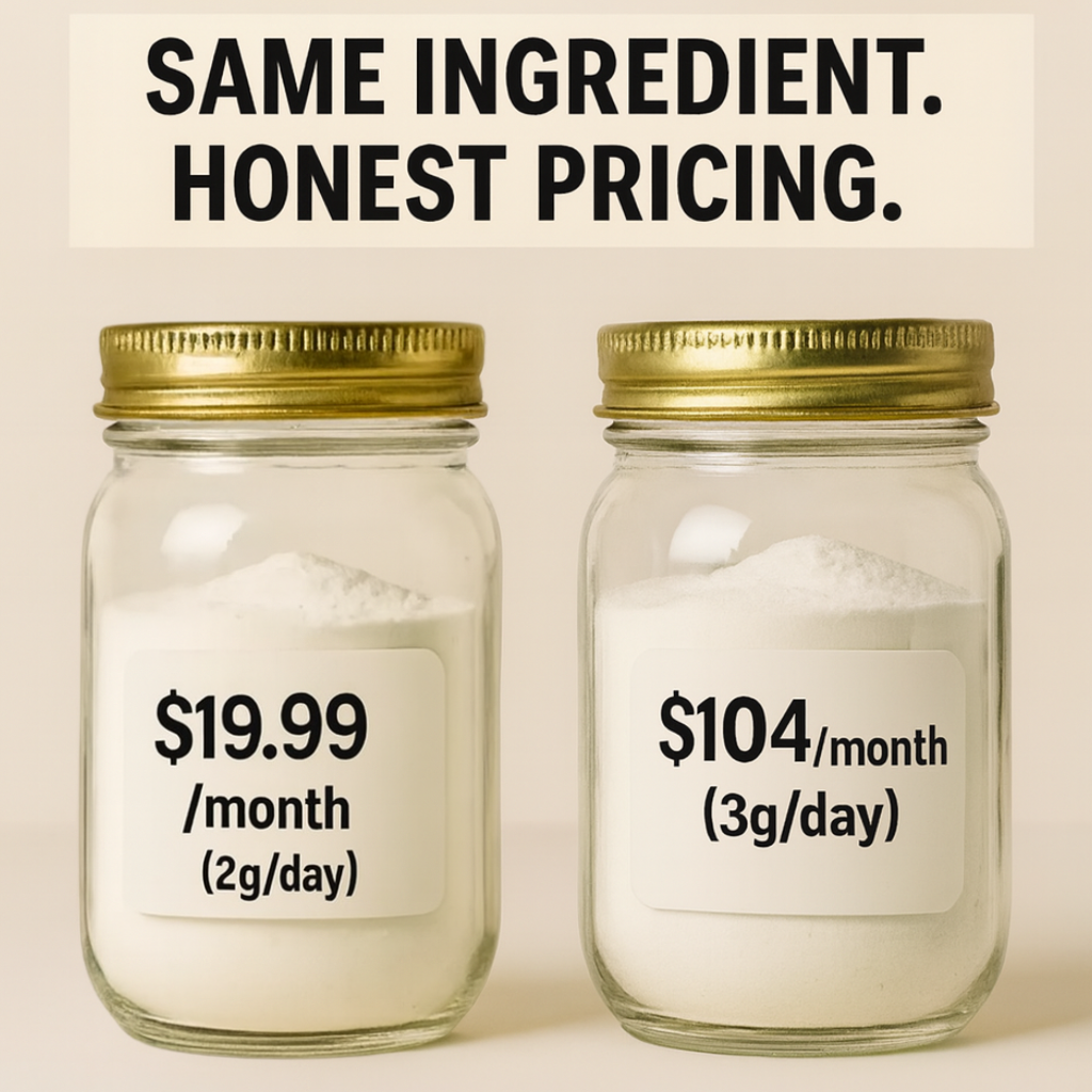 Despite what mainstream brands want you to believe, colostrum doesn’t need to be expensive. When sourced properly and delivered in effective doses (2–3 grams), your monthly cost should be under $15–$20/month, not $70–$100+.