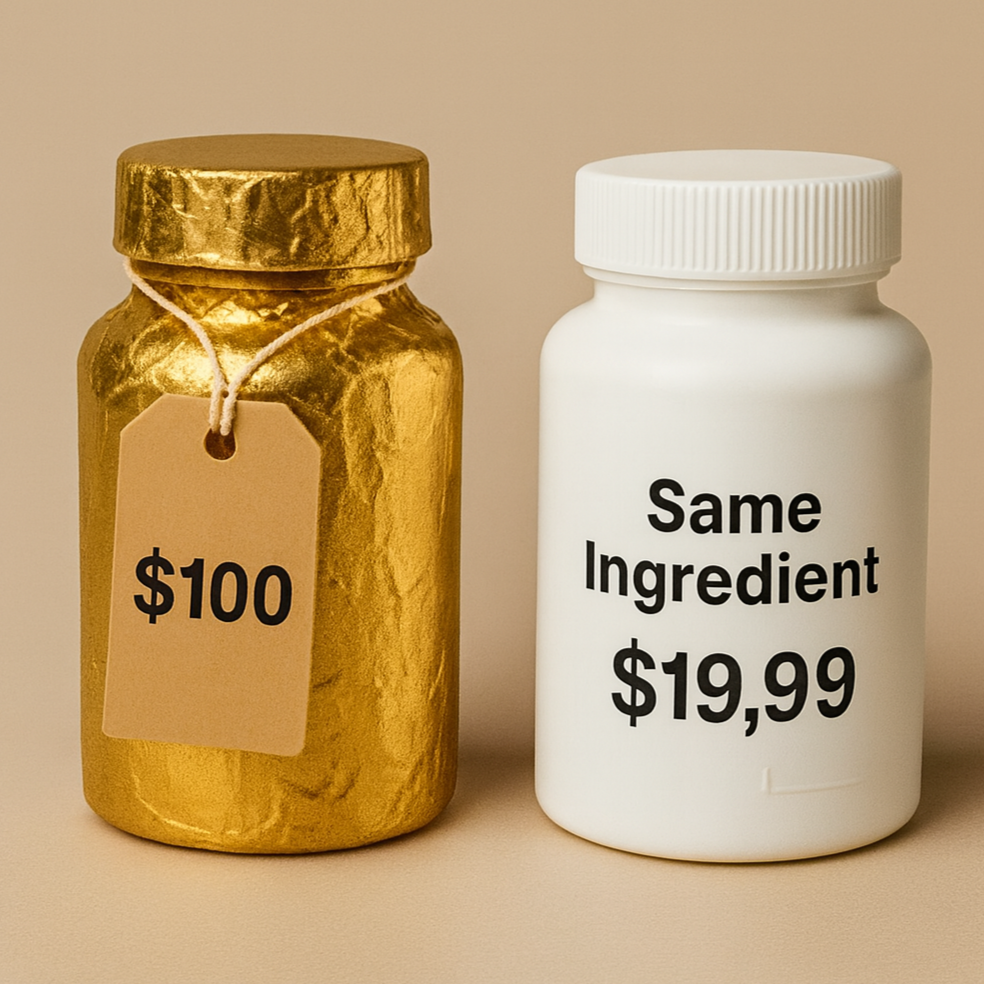 The supplement industry thrives on perception. Brands know that if a product looks “clean,” “clinical,” or “biohacker-approved,” people will assume it’s better—and pay more. That’s the health premium: a simple trick of branding, packaging, and influencer trust that drives prices sky-high.