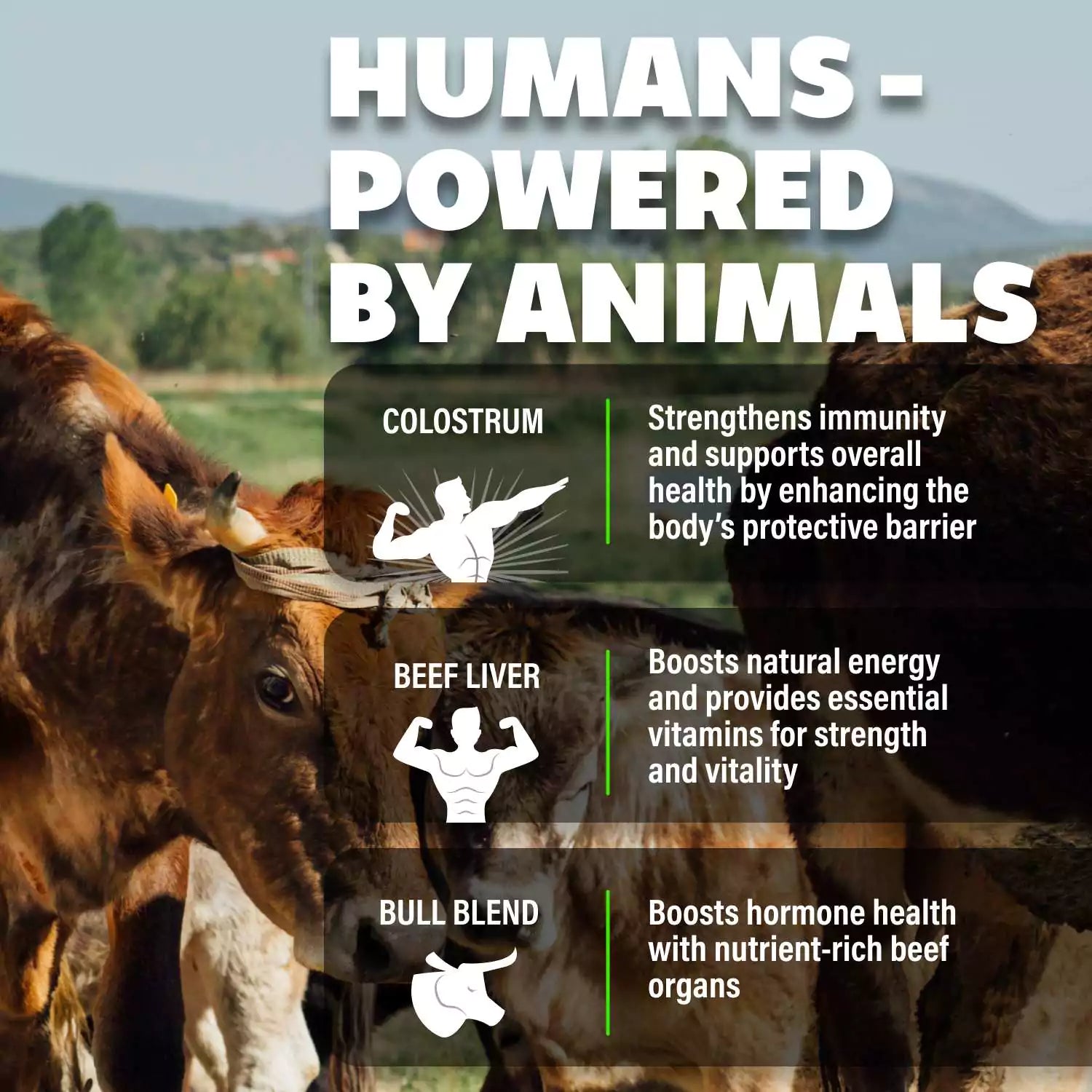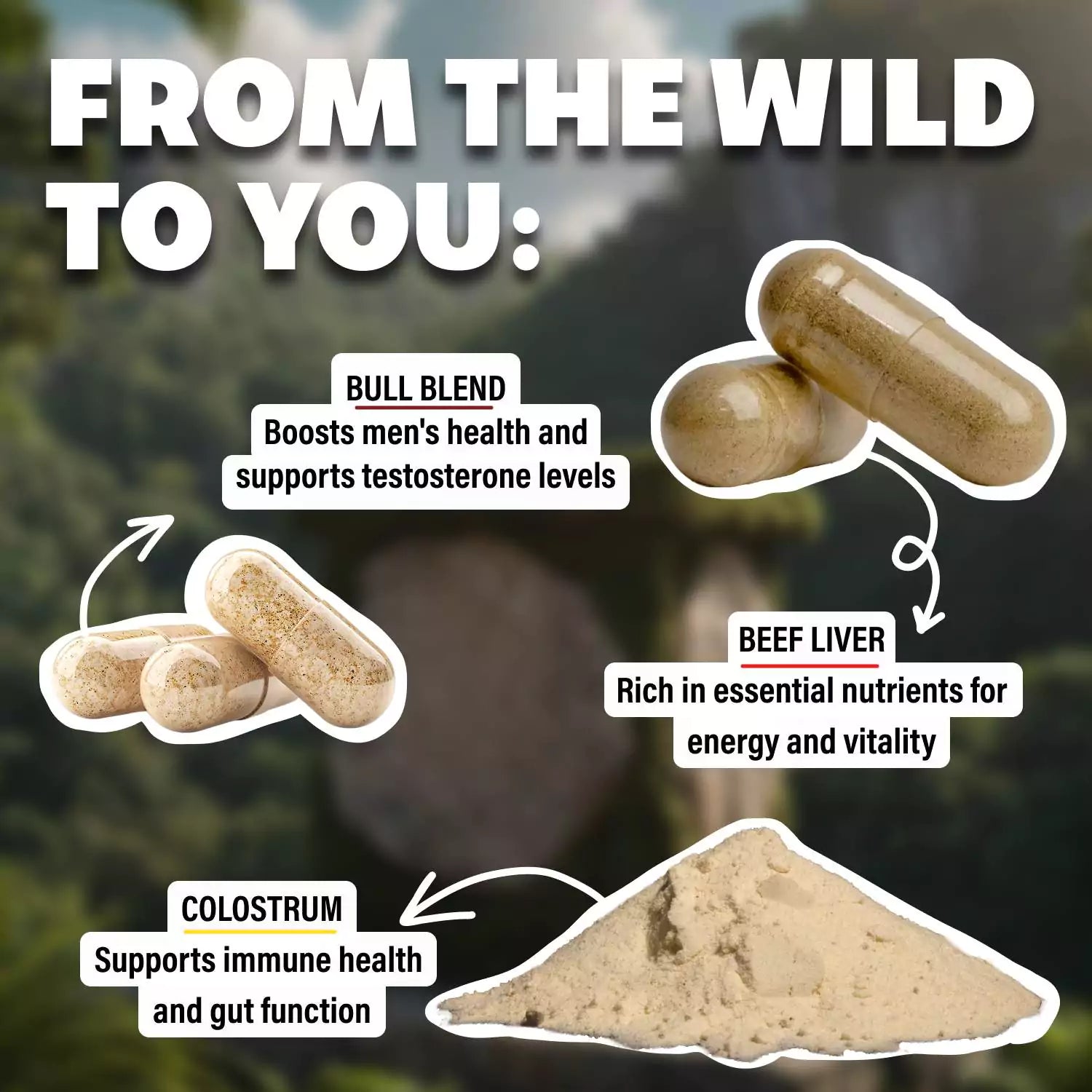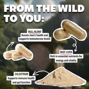 Beef liver, colostrum, and Bull Blend. Packed with bioavailable nutrients designed to power your body the way nature intended.