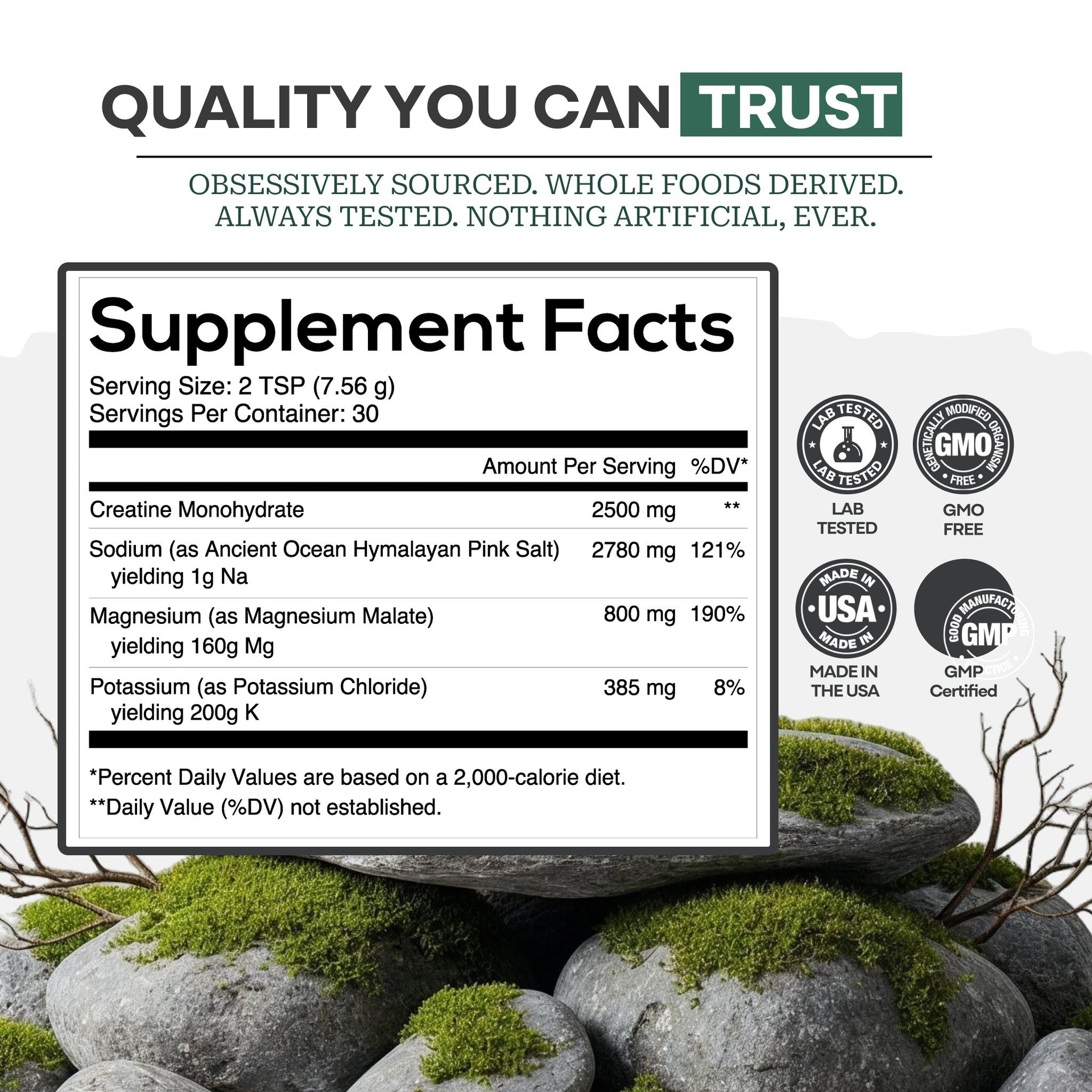 Unleash your full potential with Wild Foods Creatine + Electrolytes! This all-in-one formula combines 2.5 g of pure creatine with essential electrolytes to support hydration, energy, and muscle recovery. Whether you’re lifting weights, running, or simply staying active throughout the day, this product helps you perform at your peak.