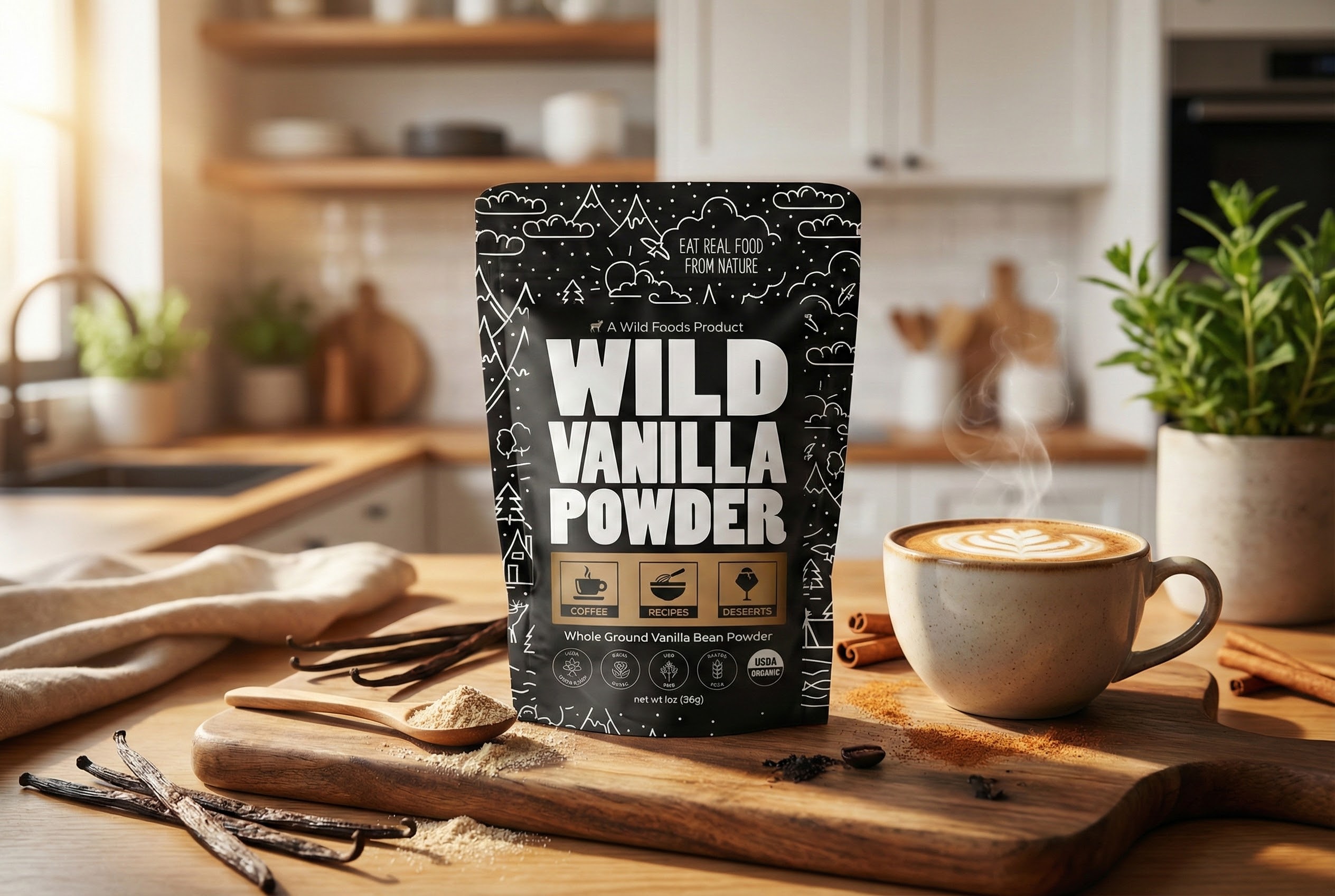 Wild Vanilla is a rich, aromatic powder made from hand-harvested whole vanilla beans that are dried and ground to deliver antioxidants and bold, recipe-boosting flavor.