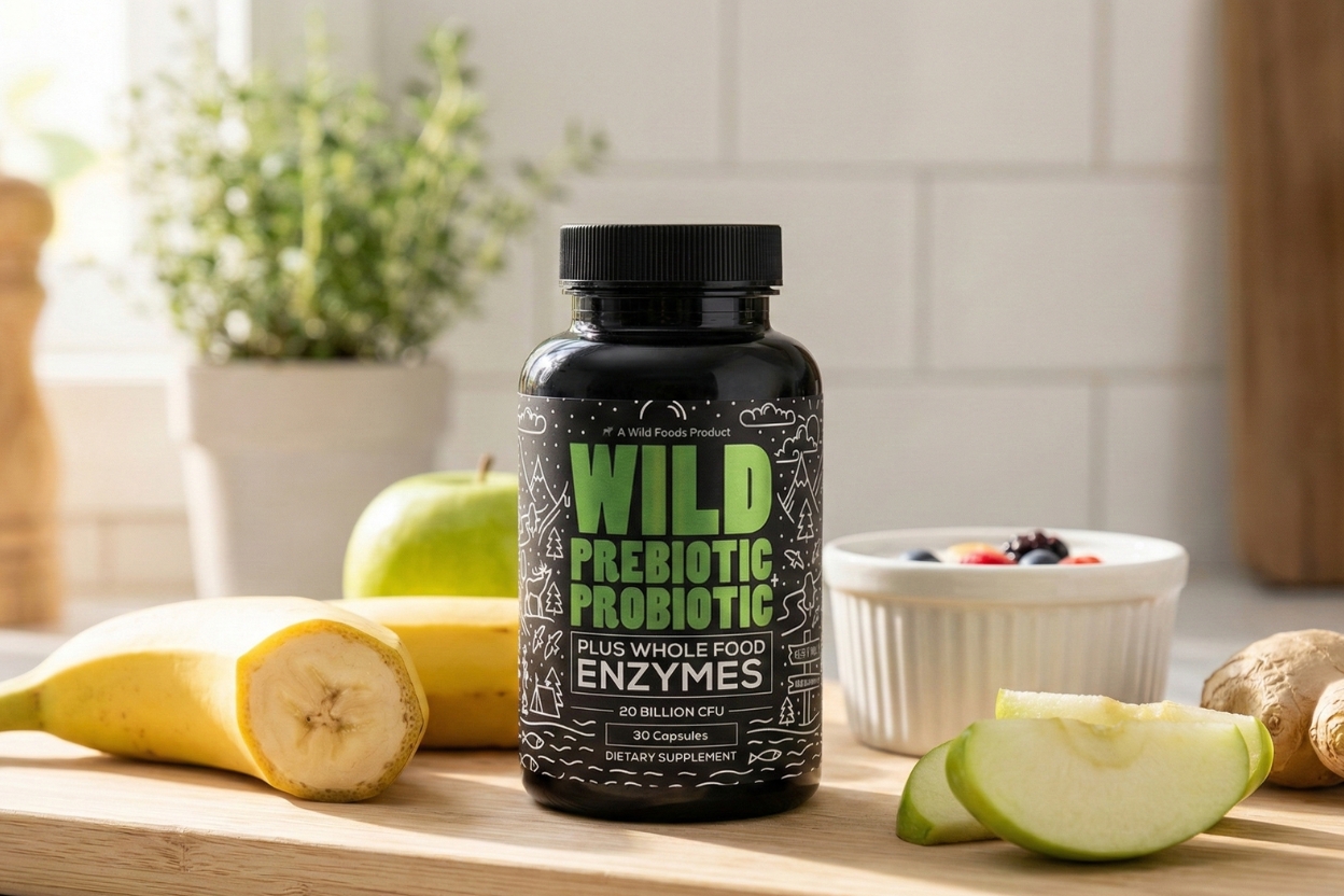 WILD PREBIOTICS, PROBIOTICS, and DIGESTIVE ENZYMES: New from Wild Foods, this breakthrough supplement is for women and men looking to enjoy all of the benefits unique to premium strains of prebiotics, probiotics, and digestive enzymes.