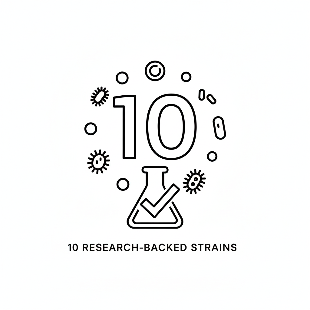 Ten research-backed strains of gut probiotic strains with 20 billion active cultures to help repopulate healthy gut bacteria to support healthy digestion, immunity, and reduced cramping/bloating while providing essential digestive enzymes that promote gut, skin, and hair health