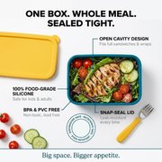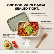 What Fits Inside: A full rice bowl + steamed vegetables + fruit salad. Or: large wrap + pasta salad + yogurt dip. One box, full meal, no second container needed.