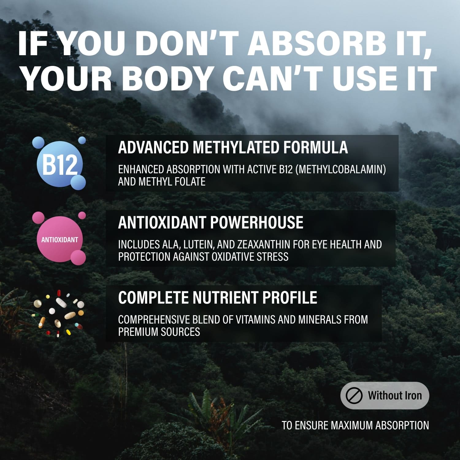 - Advanced Methylated Formula: Enhanced absorption with active B12 (methylcobalamin) and methyl folate.