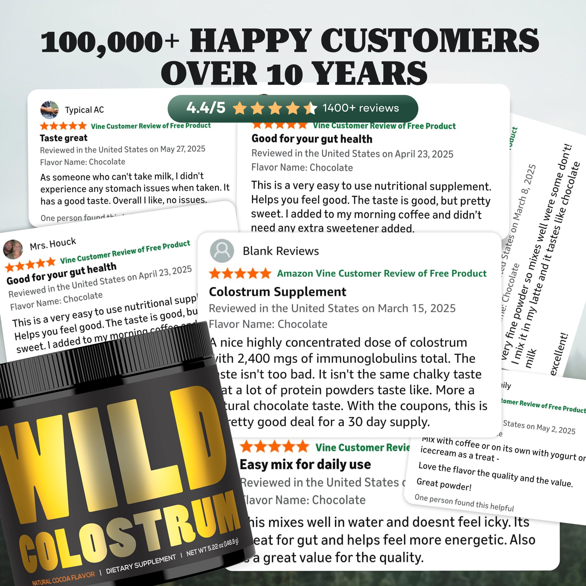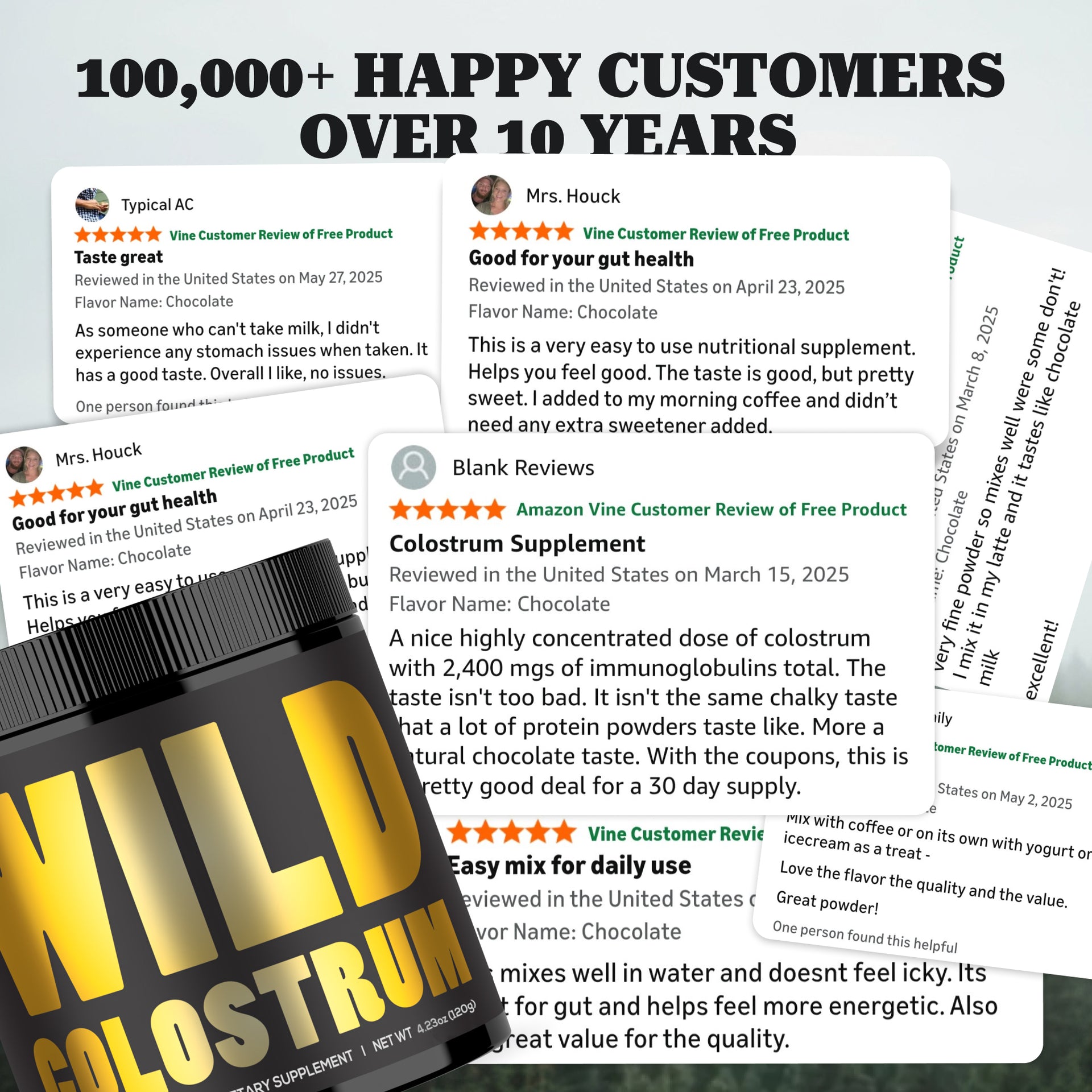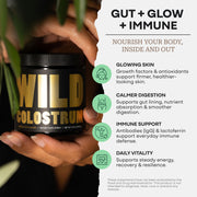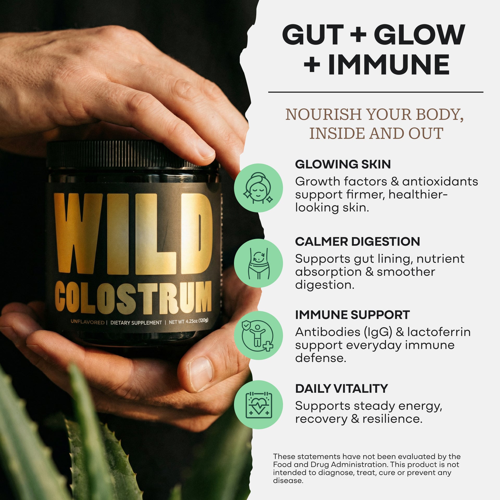 Unlike cheap colostrum supplements with questionable sourcing and fillers, Wild Colostrum delivers pure, nutrient-dense "first milk" from grass-fed cows—packed with antibodies, growth factors, and prebiotics trusted by health pros for immunity, gut health, and whole-body vitality.