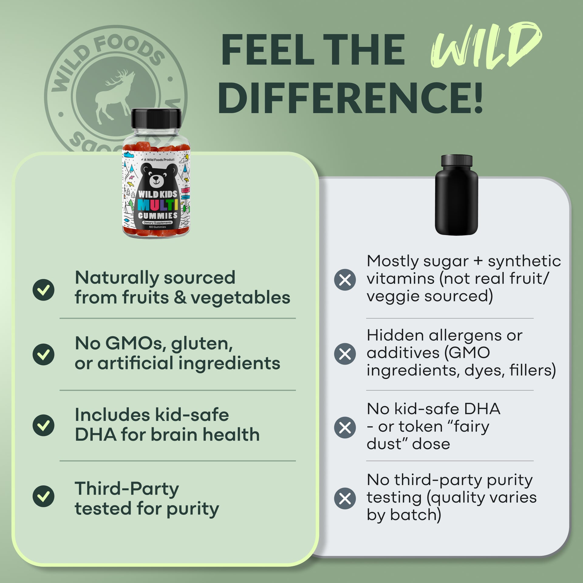 Tired of artificial gummies disguised as "healthy"? Wild Food Kids Multivitamin Gummies are different.