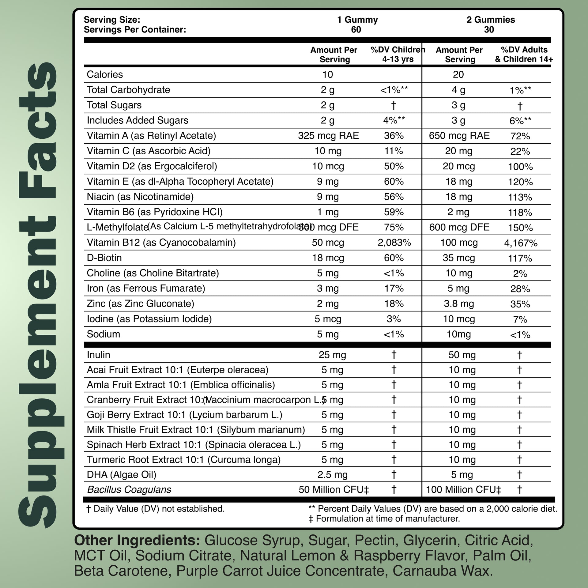 They’re ideal for children aged 4 and up. We recommend 1 gummy daily for kids 4–13 years old and 2 gummies daily for older children (14+).
